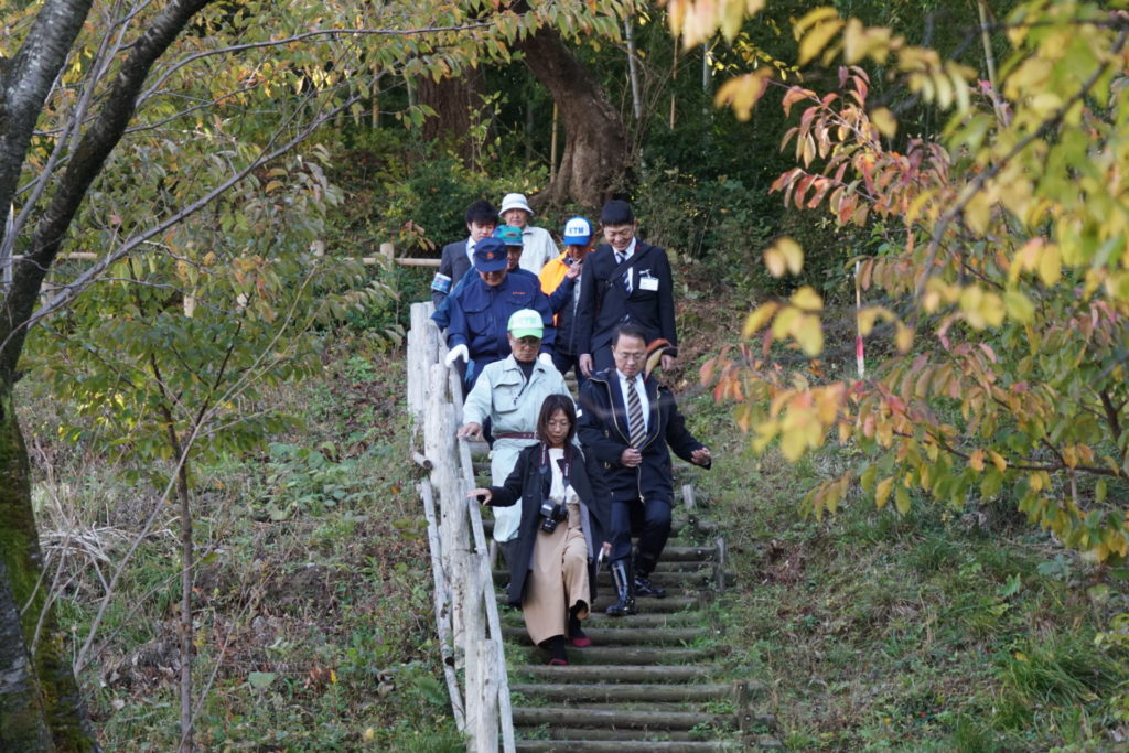 見晴らし台まで上がって、見学して降りてくる市長御一行。