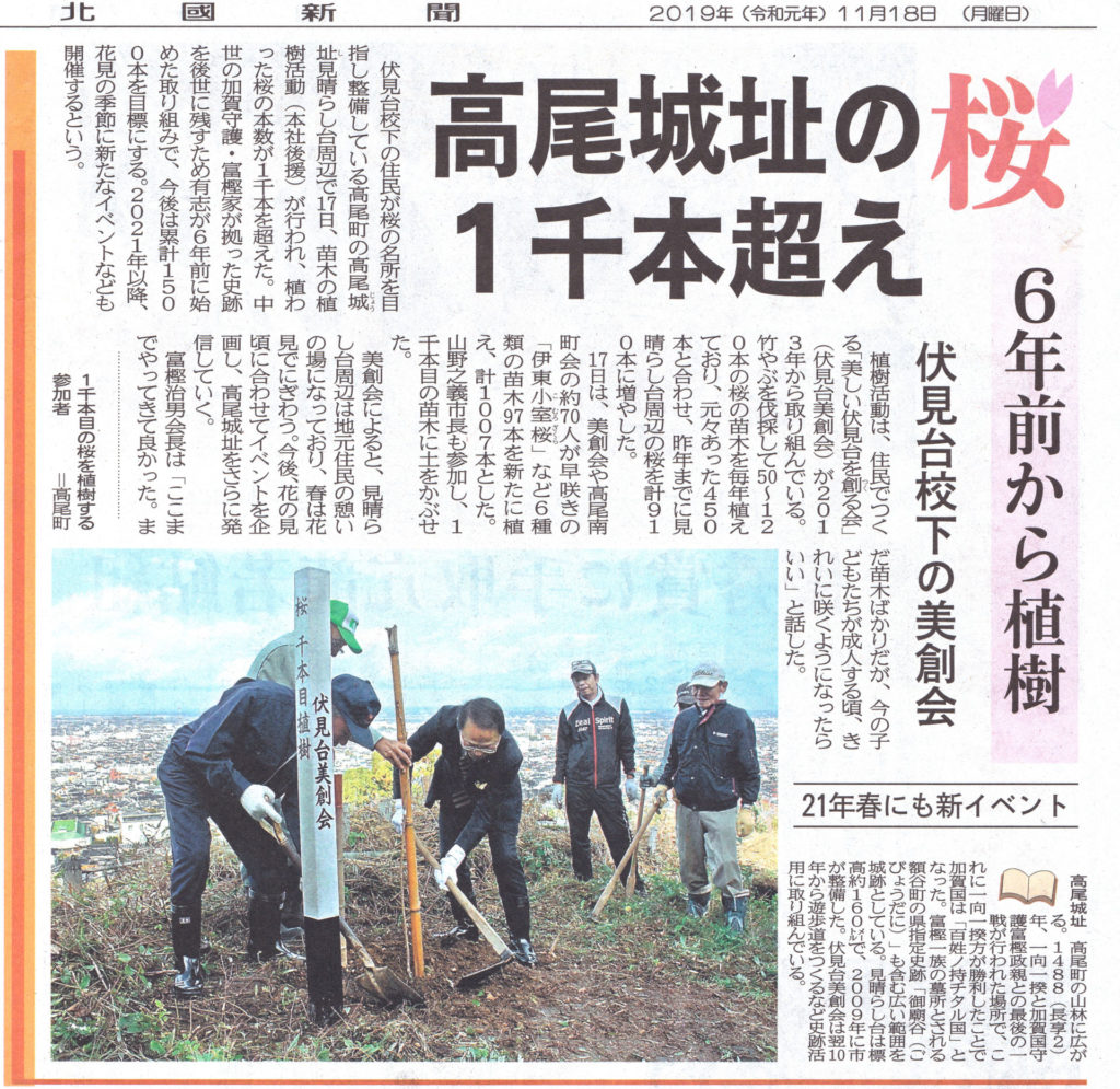 2019/09/17(日) 山野之義金沢市長を迎えて高尾城址見晴らし台に1000本目のさくらの植樹を伏見台美創会主幹の下、行いました。