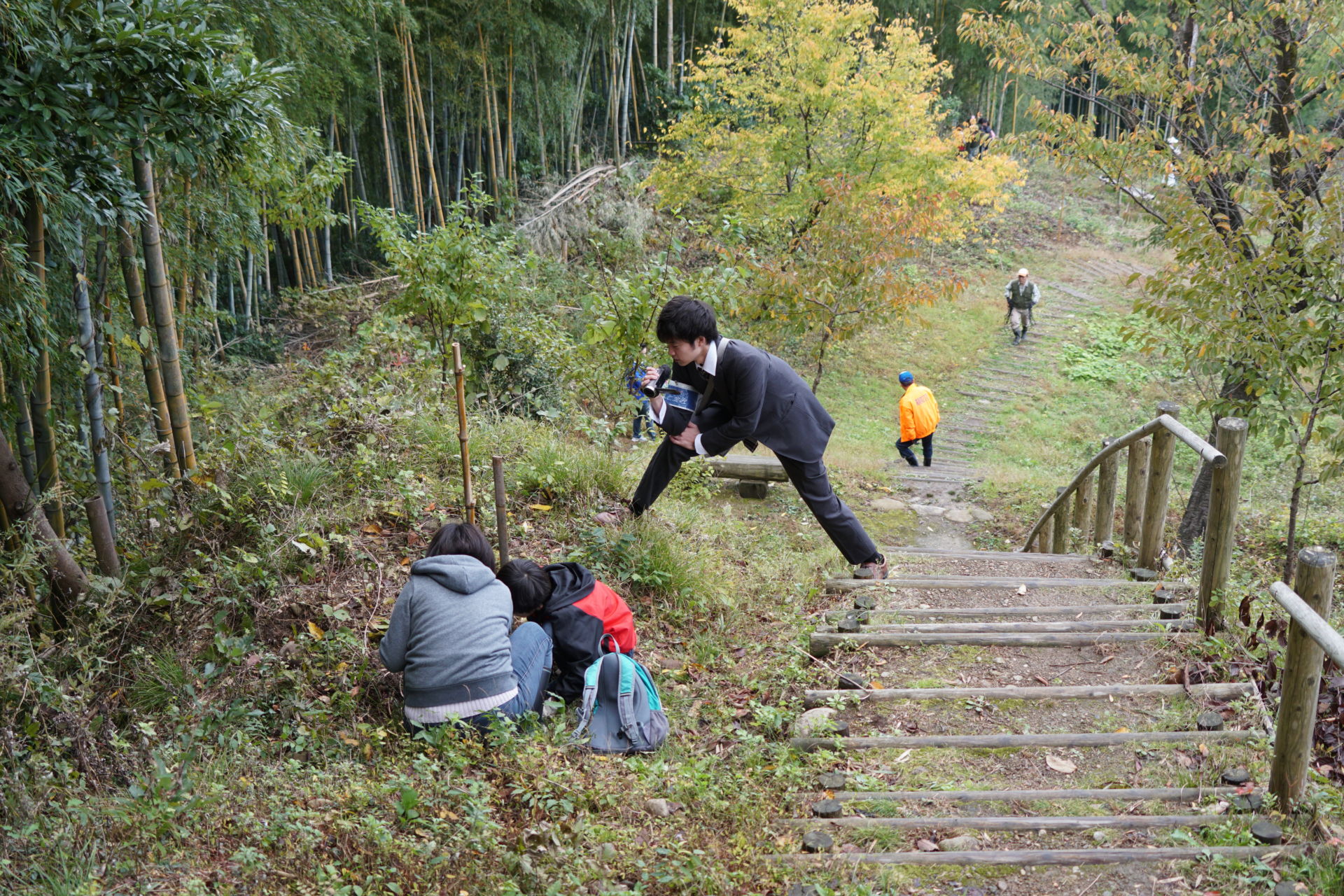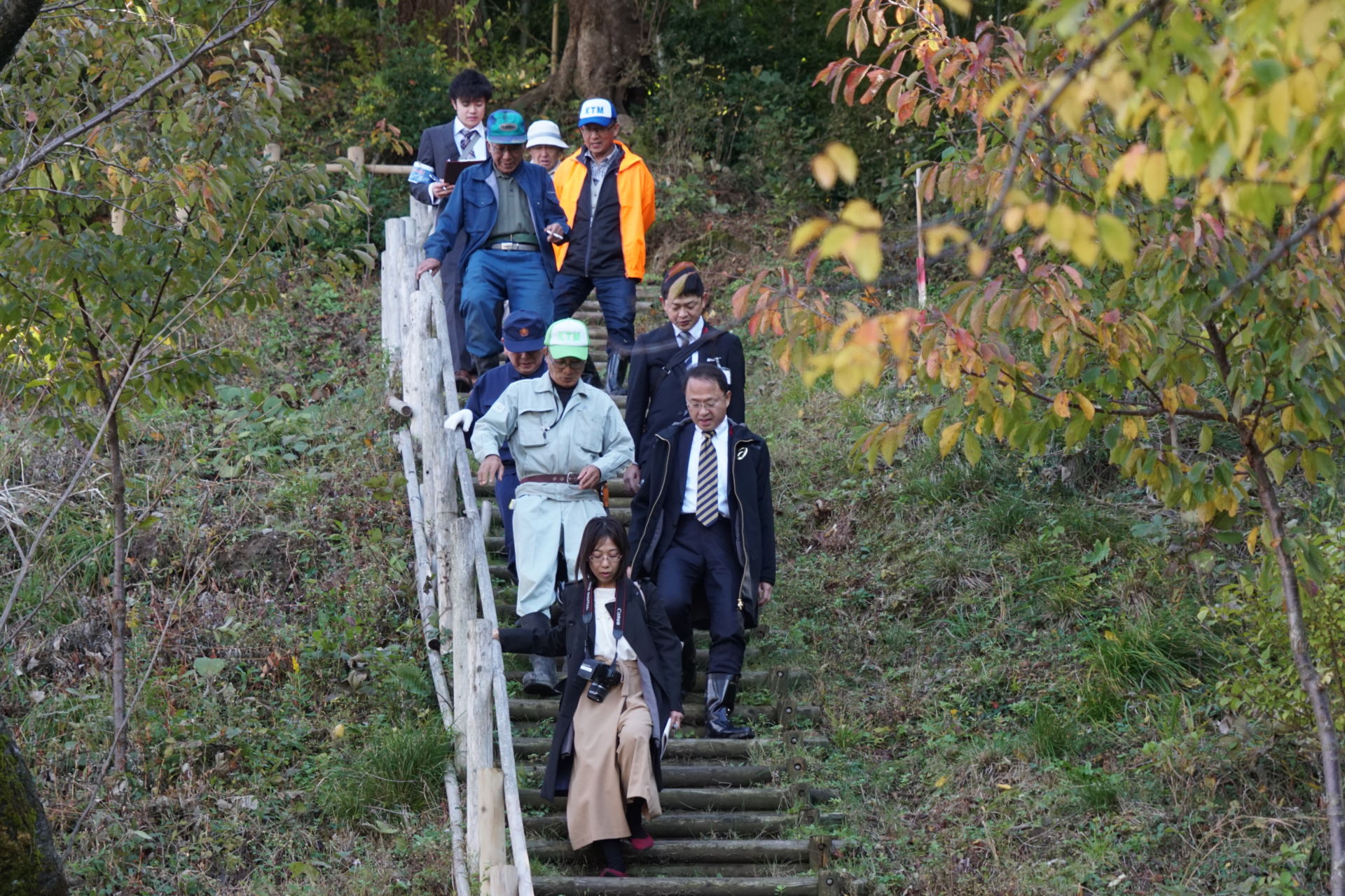 見晴らし台まで上がって、見学して降りてくる市長御一行。