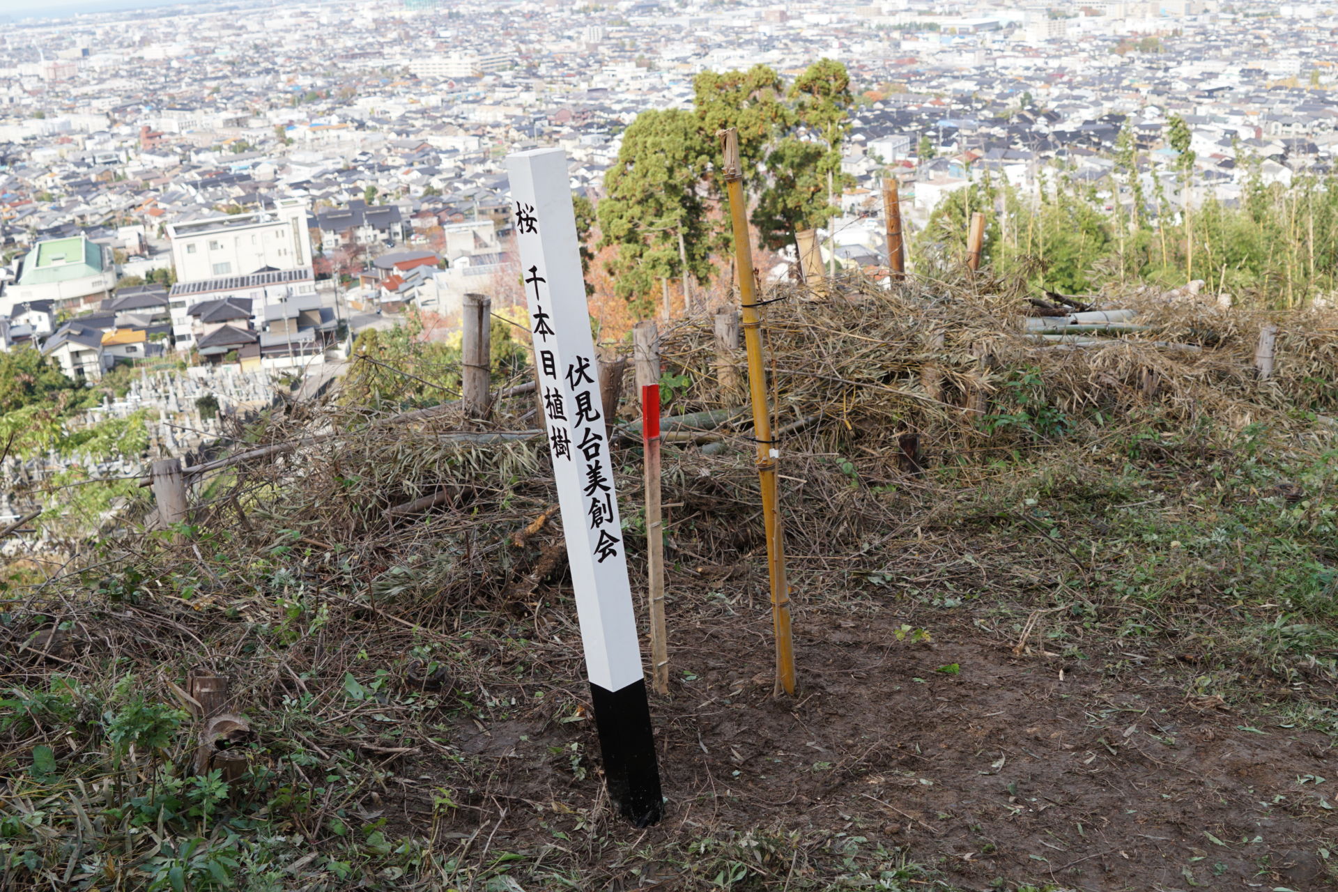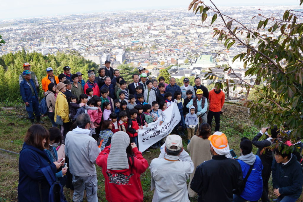 2019/09/17(日) 山野之義金沢市長を迎えて高尾城址見晴らし台に1000本目のさくらの植樹を伏見台美創会主幹の下、行いました。
