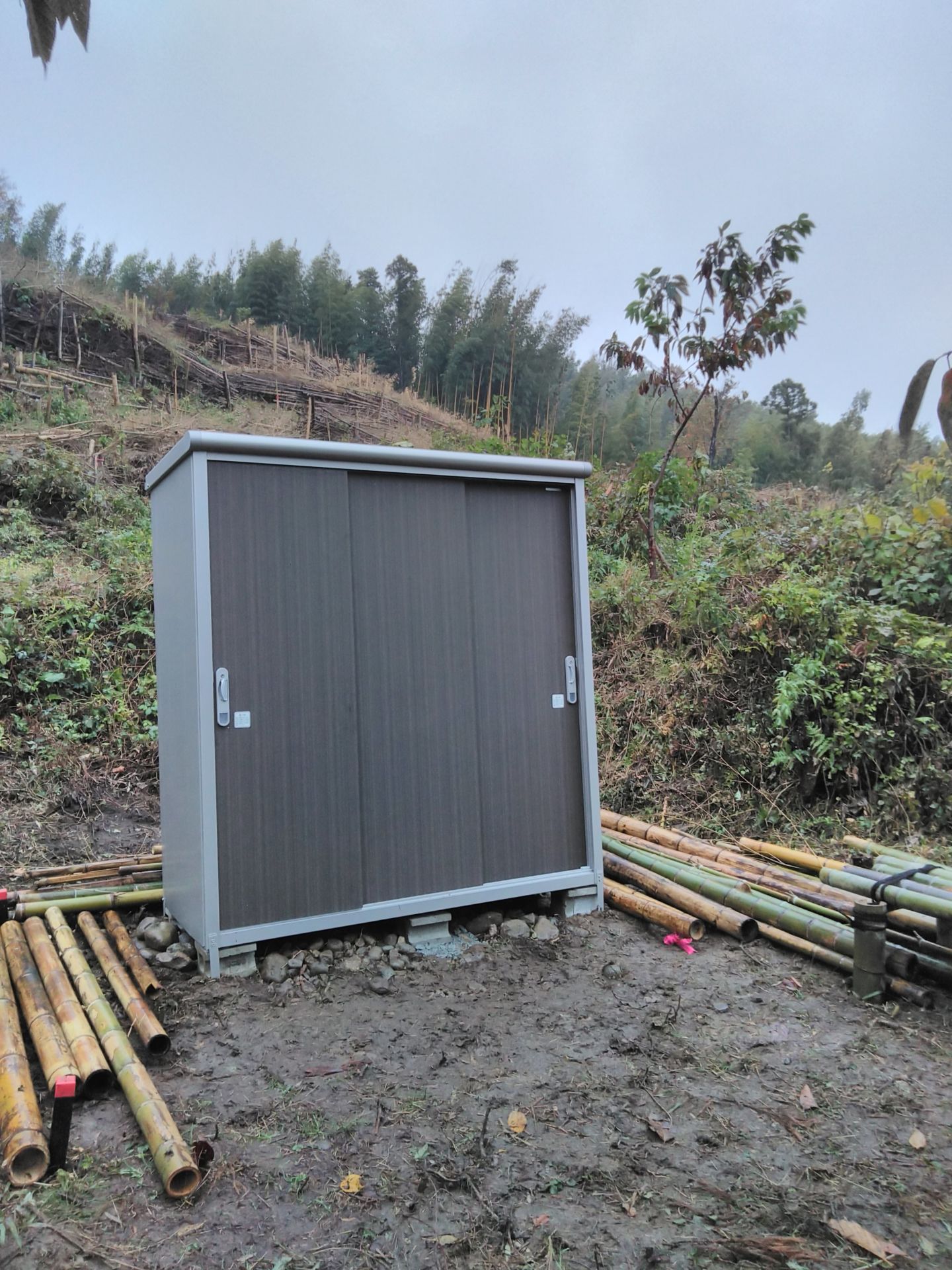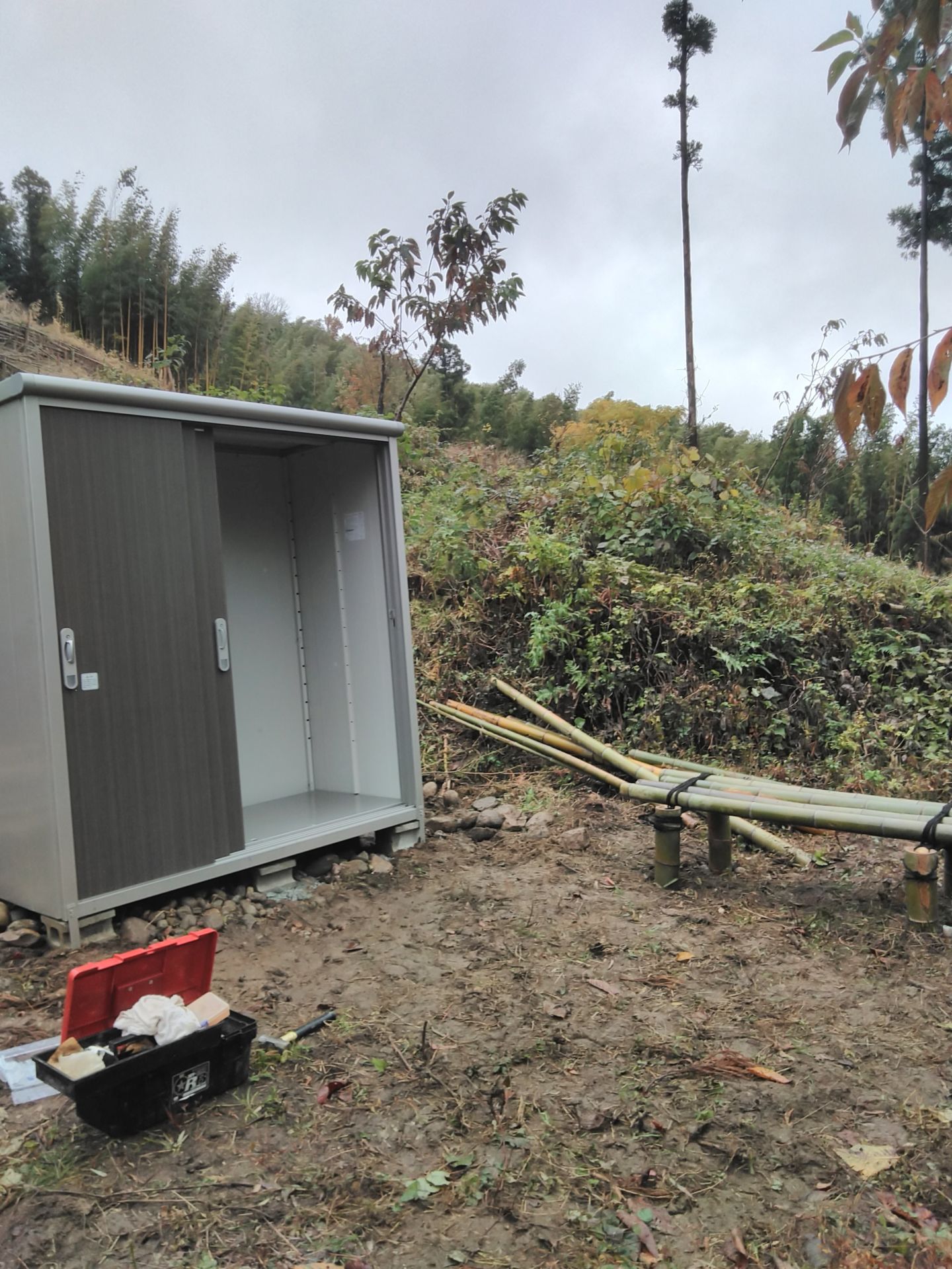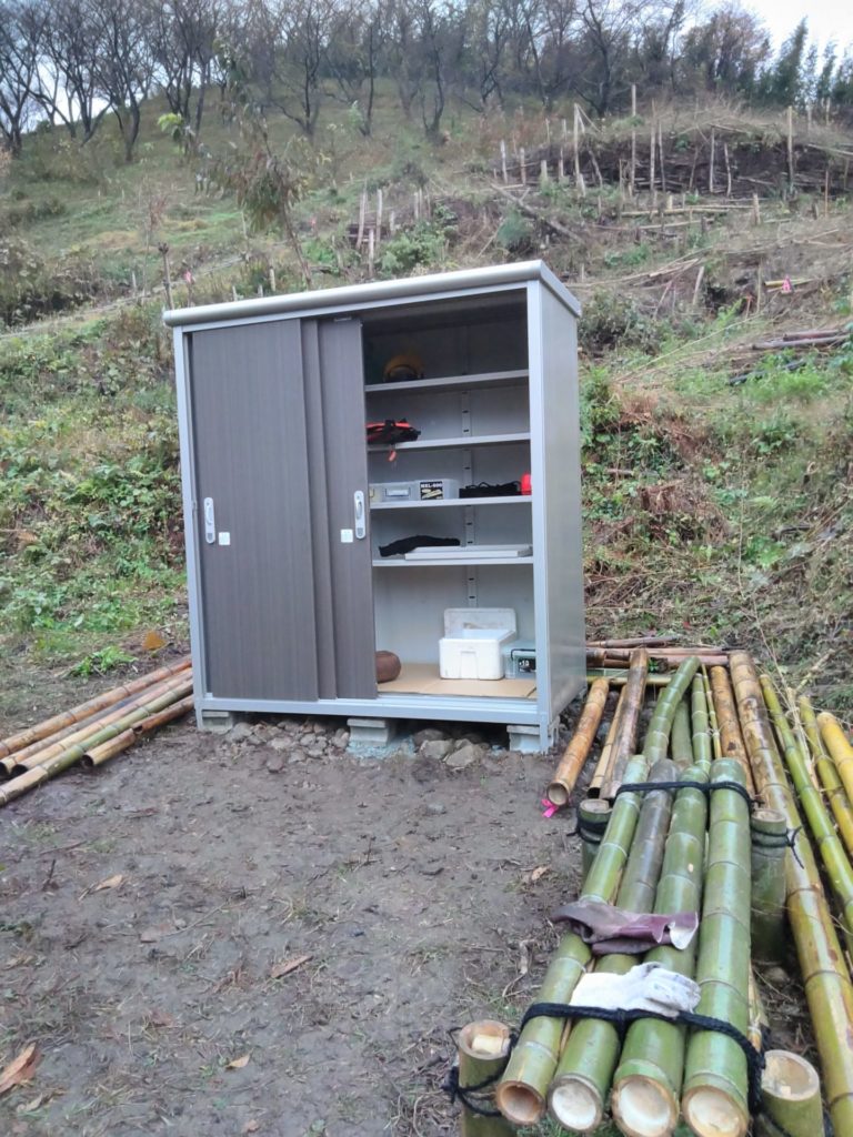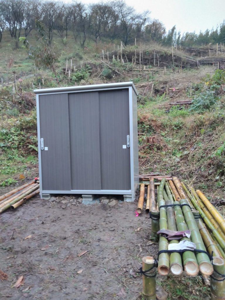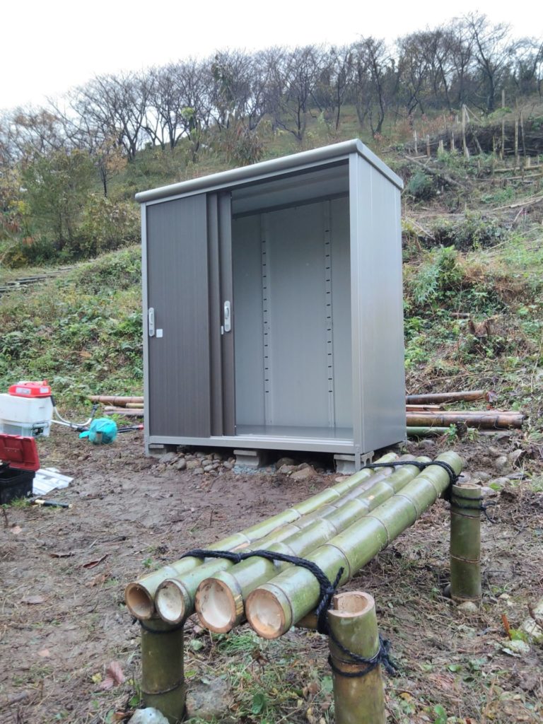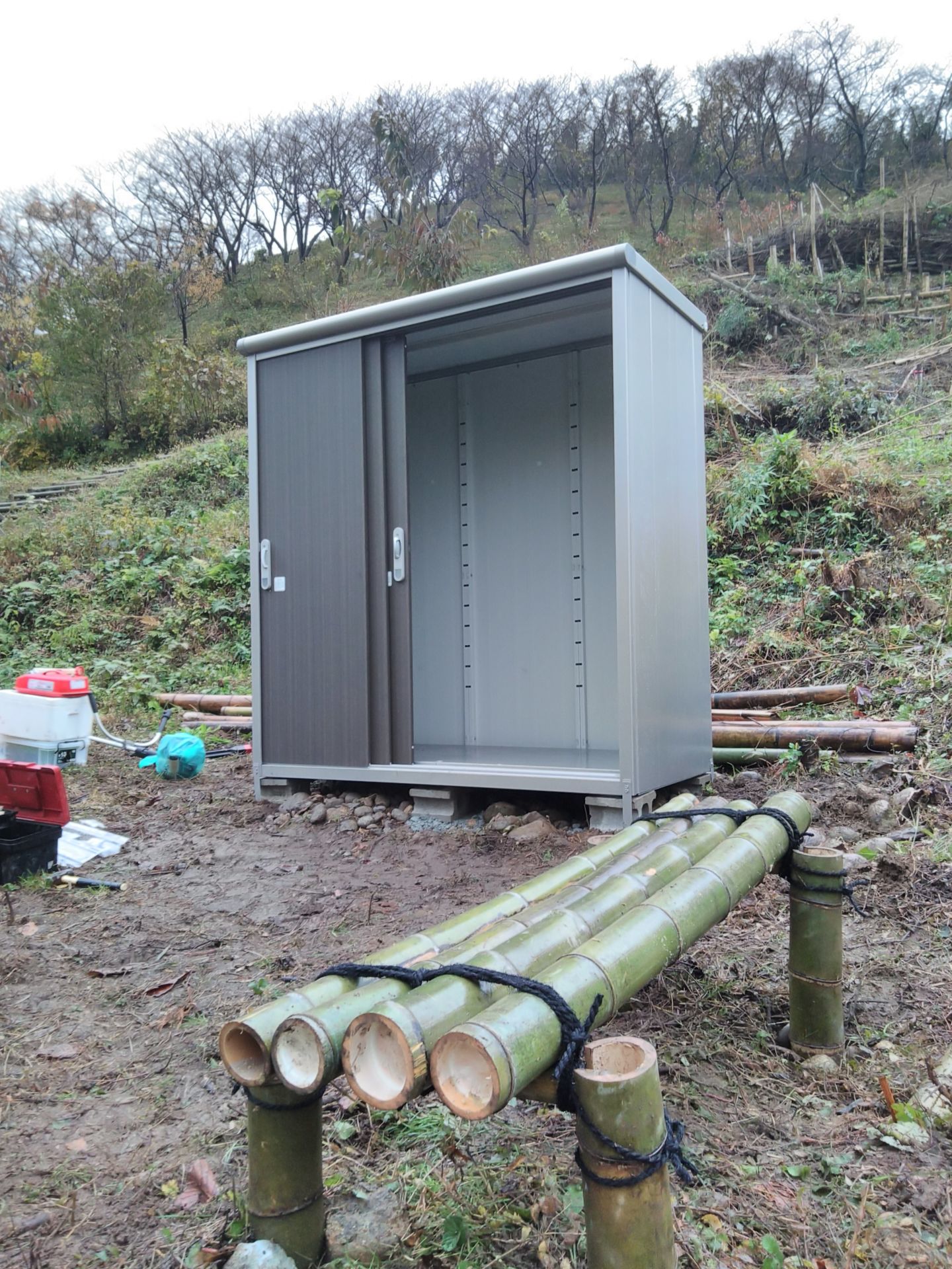 2019/11/25 皆様からの寄付金でプレハブ物置を購入し、見晴らし台の西側登り口に設置しました。