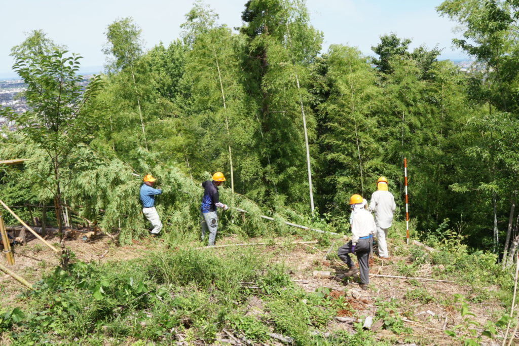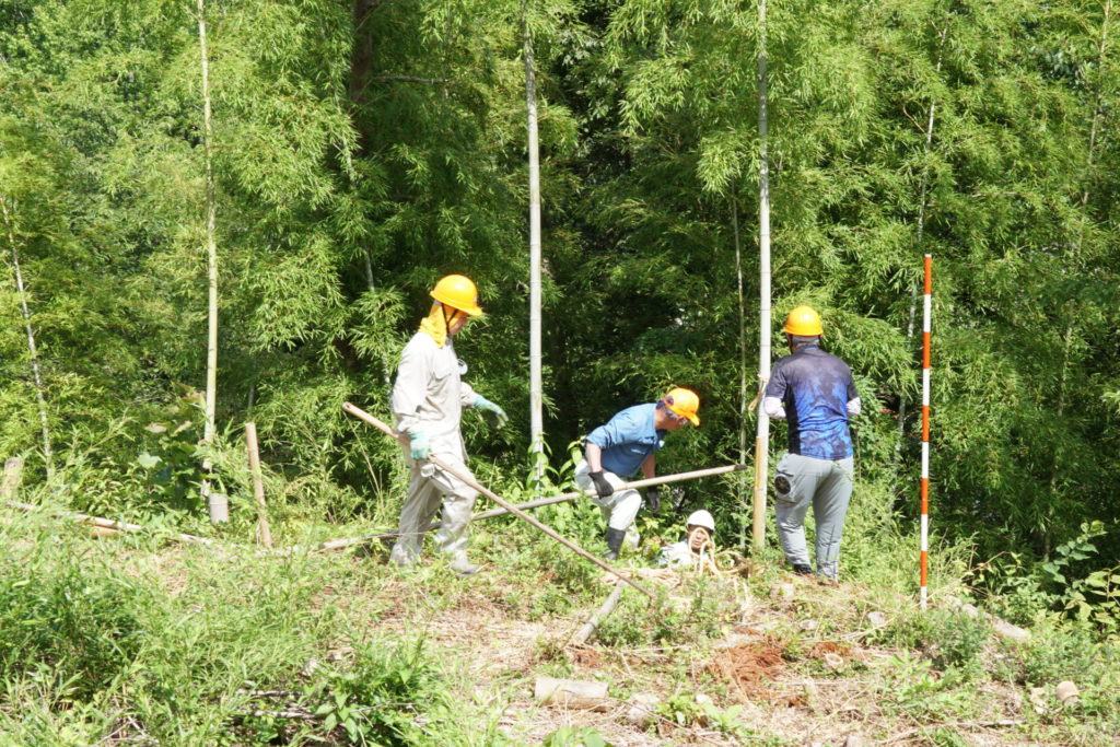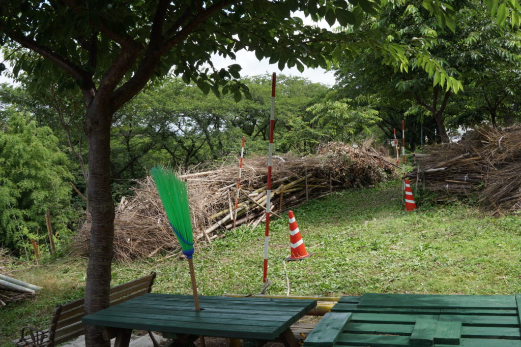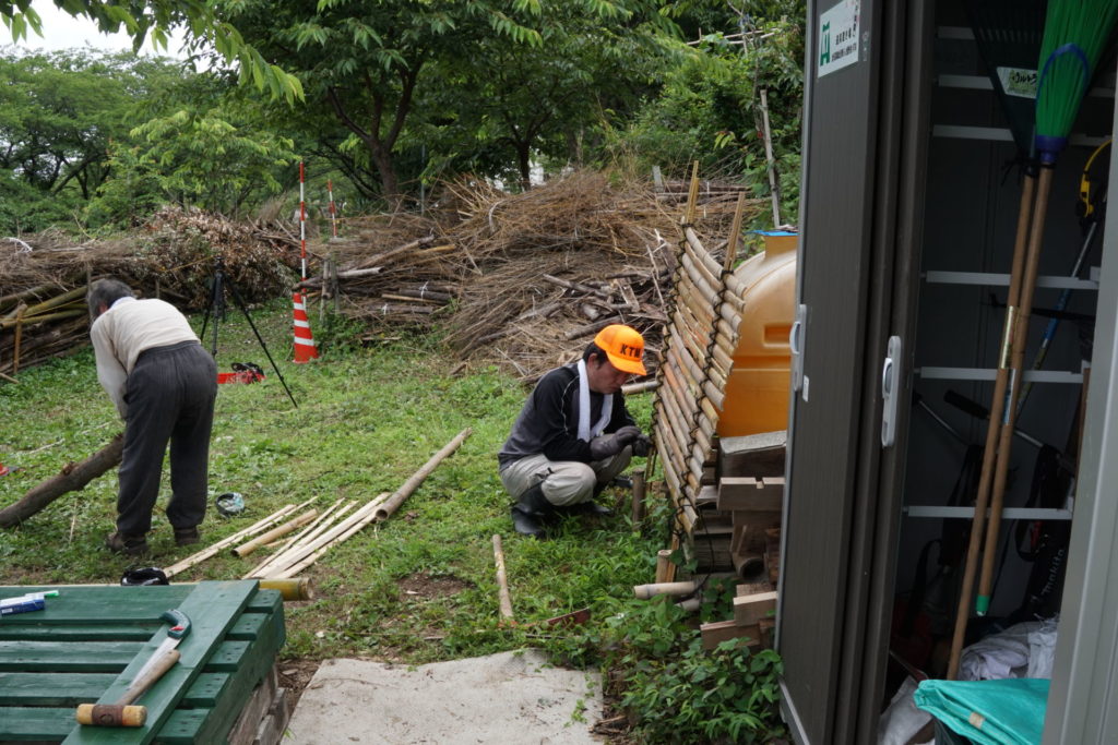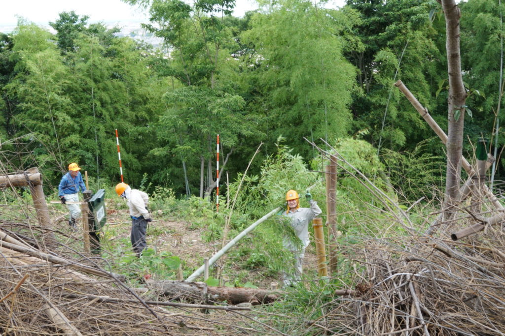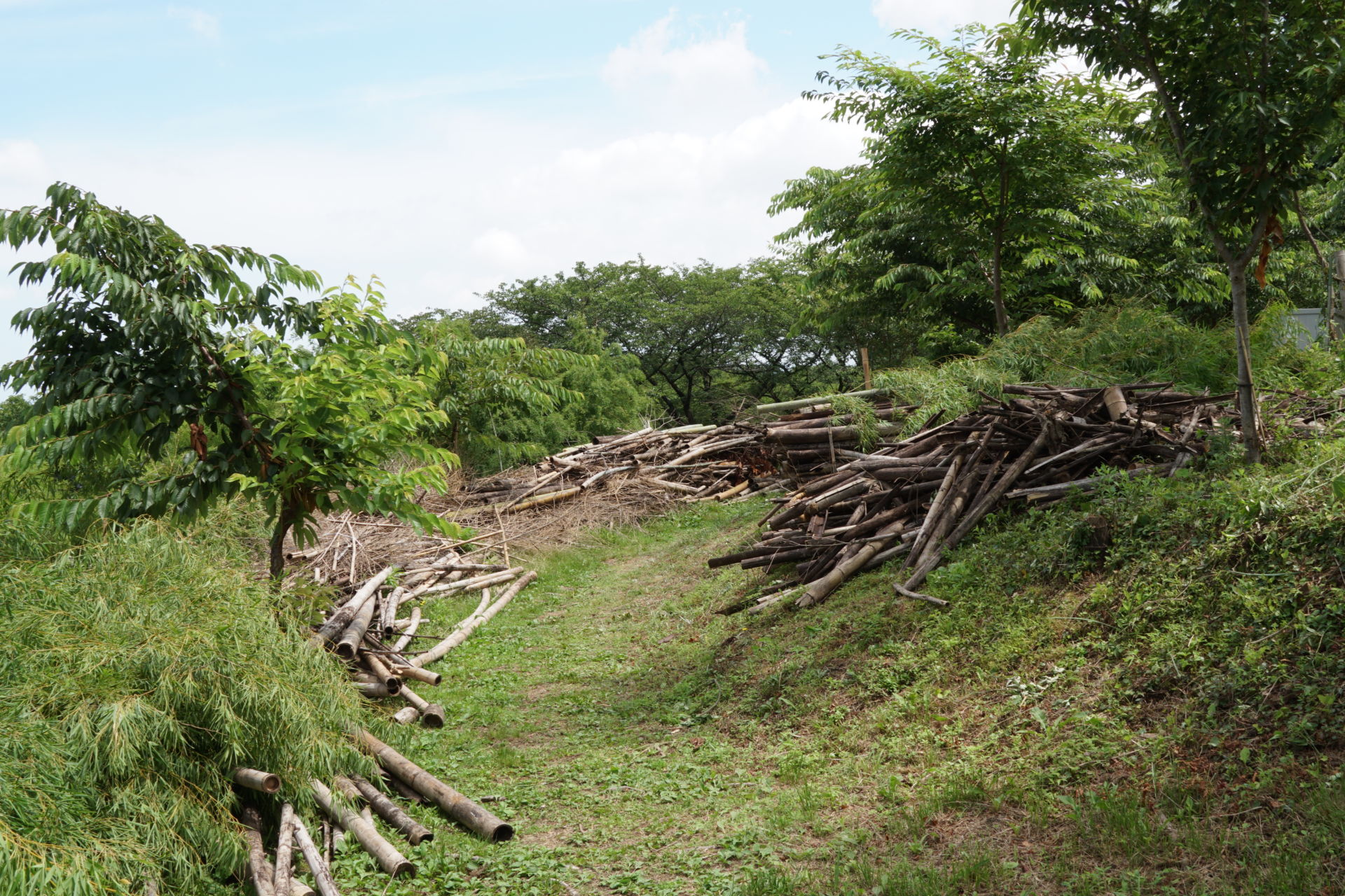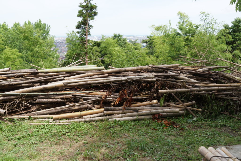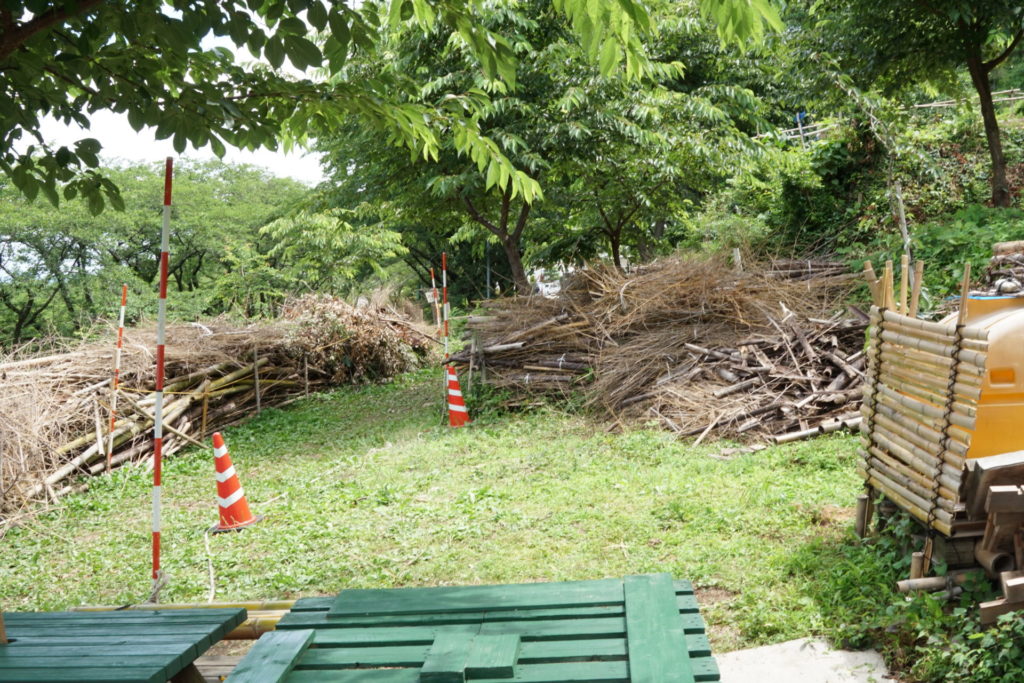 2021/7/3(土) 08:00~10:30 メンバー8人で倉庫周りの廃竹を、粉砕機にかけられるように、倉庫前に集積しました。