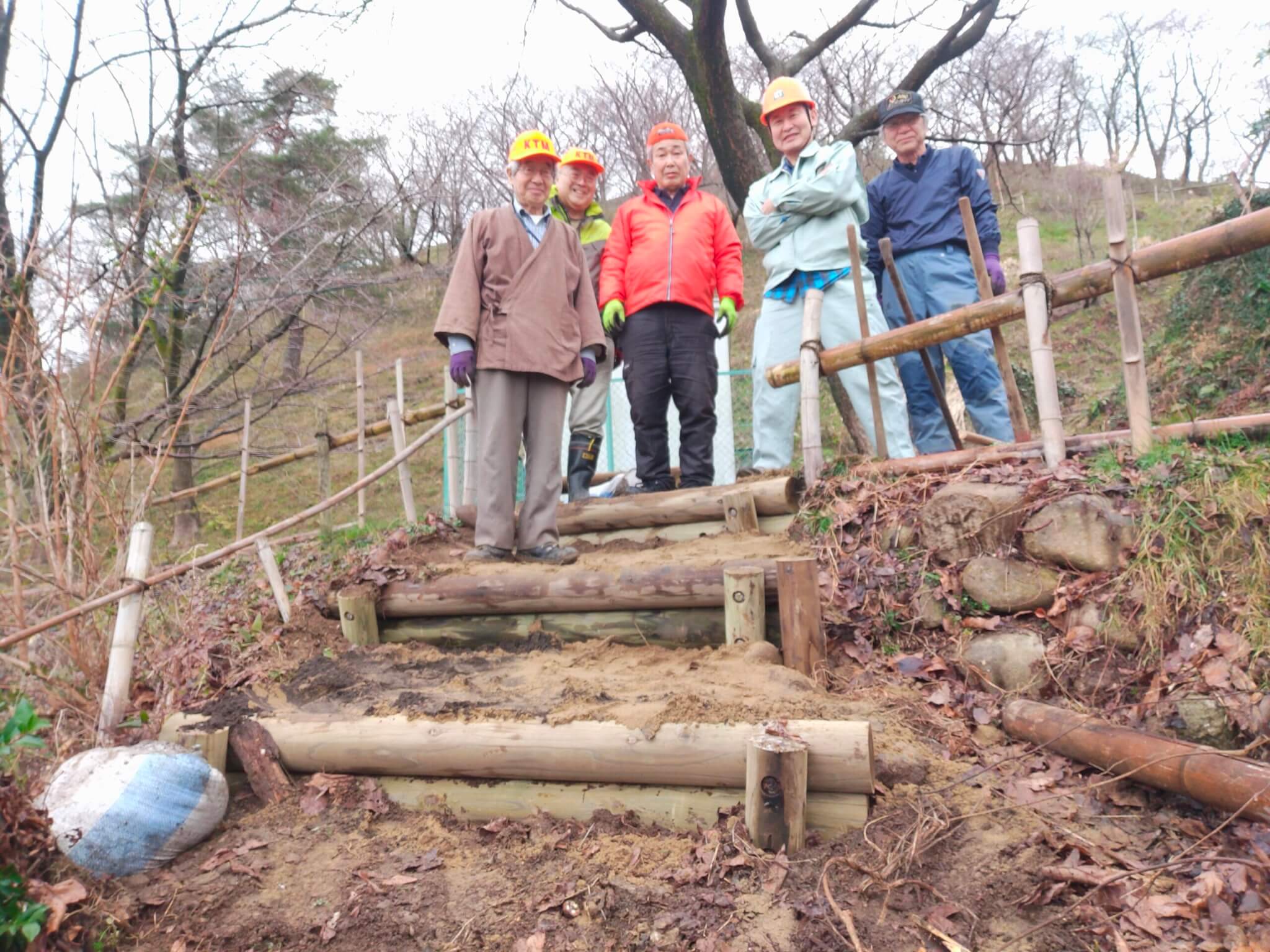 登り口前の階段補修by 武野に 桜、歩道整備、補修on 投稿日: 2024/03/172024/03/17 2024/03/17(日)13:30~14:30 小雨の中、西側階段登り口前の階段の補修を5名のメンバーで行いました。 参加した皆様、ご苦労さまでした。