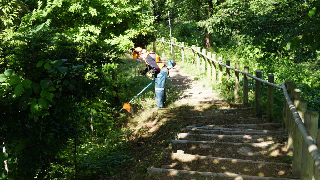 見晴らし台草刈りby 武野に 草刈on 投稿日: 2024/06/292024/06/29 2024/06/29(土)08:00 〜 10:00、見晴らし台、西側階段の草刈りをメンバー6名で行いました。参加した皆様、ご苦労さまでした。 —- 追加 —- 作業に入る前、草刈りをする前はこんな状態でした。